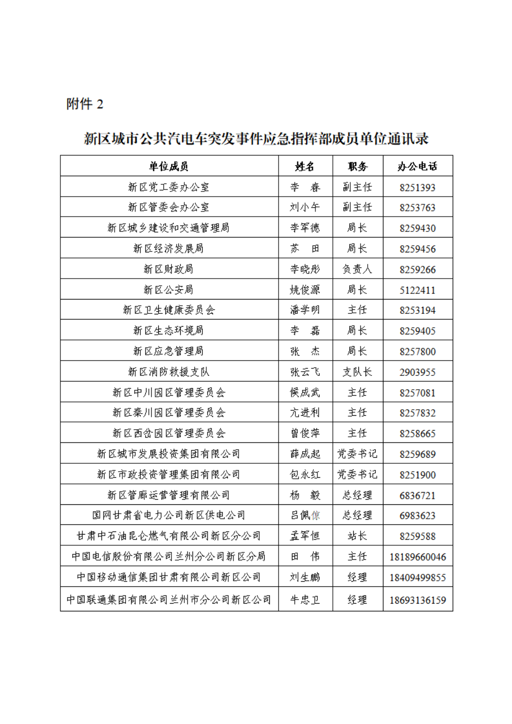2.新区城市公共汽电车突发事件应急指挥部成员单位通讯录